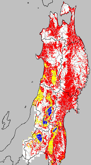 各種文献などを参考にして、草丈・根の伸長に関する限界温度を平均気温で13℃と設定し、13℃以上については1℃刻みで表示します。過去7日の移動平均値で示す。草丈や根の伸長が遅延すると予想される地域を監視するものです。