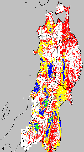各種文献などを参考にして、草丈・根の伸長に関する限界温度を平均気温で13℃と設定し、13℃以上については1℃刻みで表示します。過去7日の移動平均値で示す。草丈や根の伸長が遅延すると予想される地域を監視するものです。
