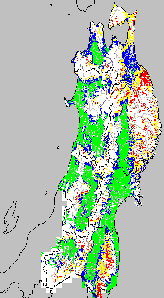 安全作期の策定にある気温指標のうち、中苗・成苗移植の安全早限日の気温指標13.0℃を用いて表示しています。13.0℃以下については1℃刻みで表示し、可能域がどのように推移するかをみるものです。