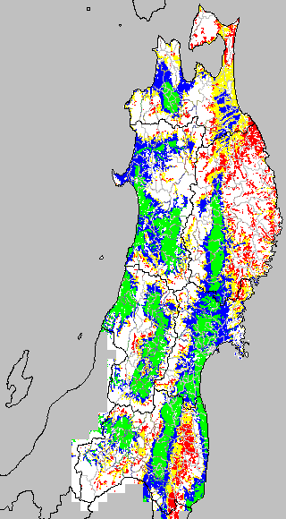 安全作期の策定にある気温指標のうち、乾田直播の安全早限日の気温指標13.5℃を用いて表示しています。13.5℃以下については1℃刻みで表示し、可能域がどのように推移するかをみるものです。