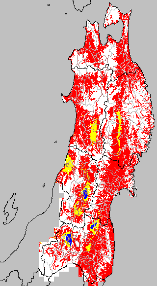 各種文献などを参考にして、分げつ形成に関する限界温度を平均気温で15℃と設定し、15℃以上については1℃刻みで表示します。過去7日の移動平均値で示す。分げつの形成が遅延すると予想される地域を監視するものです。