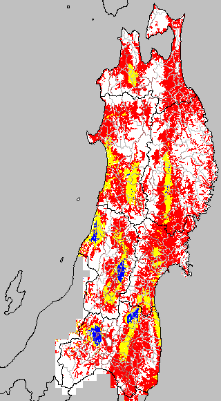 各種文献などを参考にして、分げつ形成に関する限界温度を平均気温で15℃と設定し、15℃以上については1℃刻みで表示します。過去7日の移動平均値で示す。分げつの形成が遅延すると予想される地域を監視するものです。