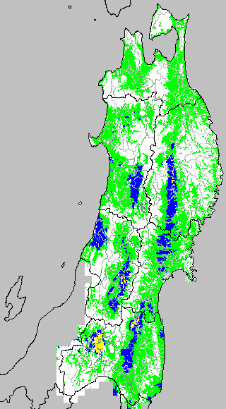 安全作期の策定にある気温指標のうち、いもち病蔓延可能日の平均気温指標20.0℃を用いて表示し、20.0℃未満については1℃刻みで表示します。過去7日の移動平均値で示しています。いもち病の蔓延可能域を監視するものです。葉いもち発生予察メッシュと併せてご覧ください。