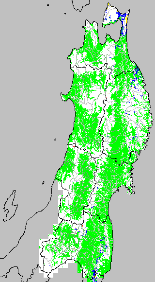 各種文献などを参考にして、草丈・根の伸長に関する限界温度を平均気温で13℃と設定し、13℃以上については1℃刻みで表示します。過去7日の移動平均値で示す。草丈や根の伸長が遅延すると予想される地域を監視するものです。
