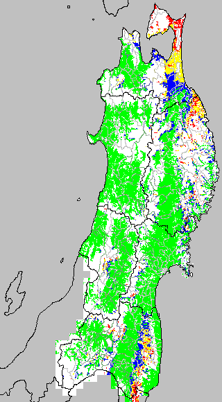 各種文献などを参考にして、分げつ形成に関する限界温度を平均気温で15℃と設定し、15℃以上については1℃刻みで表示します。過去7日の移動平均値で示す。分げつの形成が遅延すると予想される地域を監視するものです。