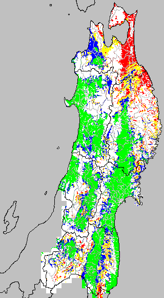この時期平均気温が20℃以下になると、低温障害が発生しやすくなる。そこで、20℃を限界気温として、深水管理の必要な地域を特定する。また、平均気温が20〜21℃の地域も特に前歴深水管理を行う方が望ましい。この気温指標は前7日間の移動平均値で示す。