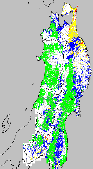 冷却量は((日平均気温−20℃)の積算値)で得られる指標である。この値が負でかつ数値が大きいほど低温の程度が大きくなり、低温被害が大きくなると推定される。この気温指標は前7日間の冷却量を積算して示す。