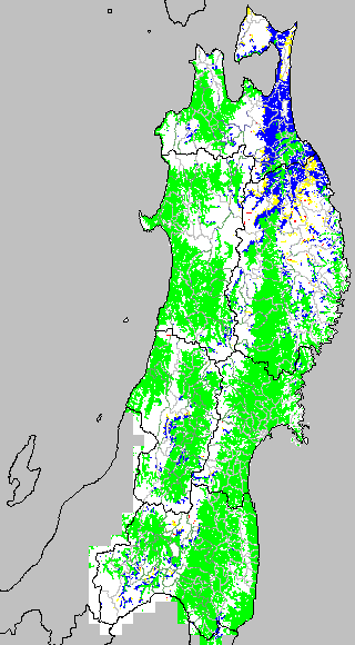 冷却量は((日平均気温−20℃)の積算値)で得られる指標である。この値が負でかつ数値が大きいほど低温の程度が大きくなり、低温被害が大きくなると推定される。この気温指標は前7日間の移動平均値を基に変換して示す。
