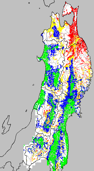 この時期平均気温が20℃以下になると、低温障害が発生しやすくなる。そこで、20℃を限界気温として、深水管理の必要な地域を特定する。また、平均気温が20〜21℃の地域も特に前歴深水管理を行う方が望ましい。この気温指標は前7日間の移動平均値で示す。