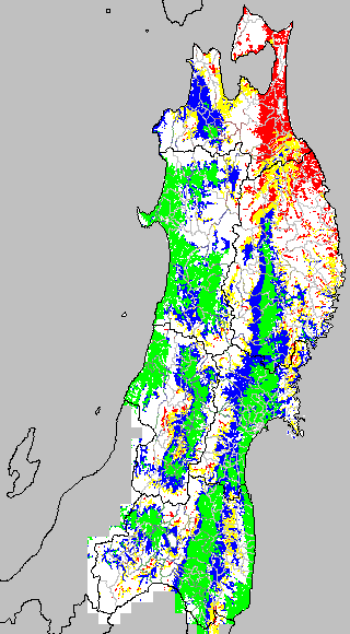 この時期平均気温が20℃以下になると、低温障害が発生しやすくなる。そこで、20℃を限界気温として、深水管理の必要な地域を特定する。また、平均気温が20〜21℃の地域も特に前歴深水管理を行う方が望ましい。この気温指標は前7日間の移動平均値で示す。