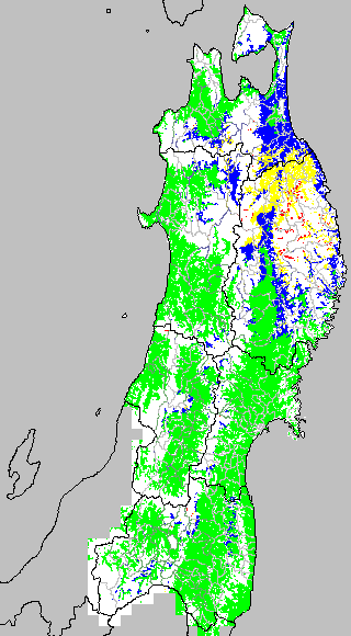 冷却量は((日平均気温−20℃)の積算値)で得られる指標である。この値が負でかつ数値が大きいほど低温の程度が大きくなり、低温被害が大きくなると推定される。この気温指標は前7日間の移動平均値を基に変換して示す。