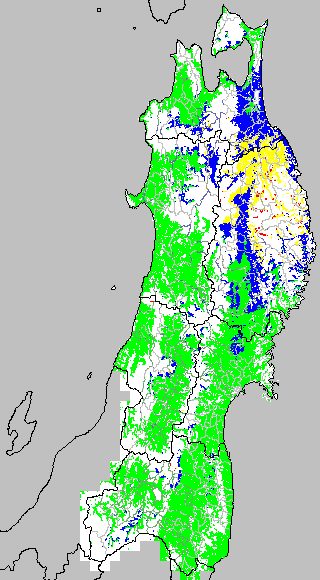 冷却量は((日平均気温−20℃)の積算値)で得られる指標である。この値が負でかつ数値が大きいほど低温の程度が大きくなり、低温被害が大きくなると推定される。この気温指標は前7日間の移動平均値を基に変換して示す。