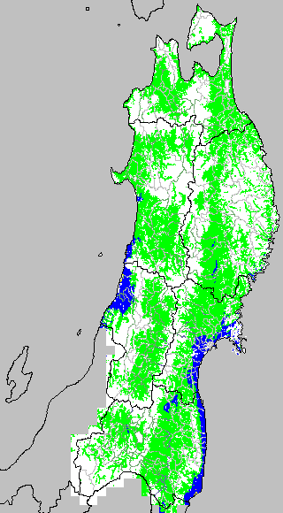 安全作期の策定にある気温指標のうち、いもち病蔓延可能日の平均気温指標20.0℃を用いて表示し、20.0℃未満については1℃刻みで表示します。過去7日の移動平均値で示しています。いもち病の蔓延可能域を監視するものです。葉いもち発生予察メッシュと併せてご覧ください。