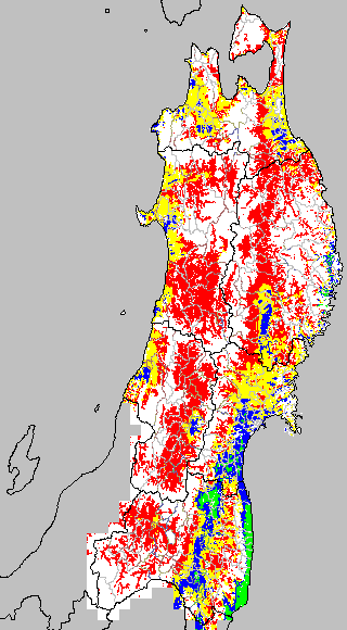 安全作期の策定にある気温指標のうち、夏作物の生育可能な気温指標10℃を用いて表示しています。10℃以下については1℃刻みで表示し、可能域がどのように推移するかをみるものです。