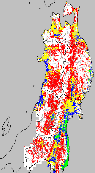 安全作期の策定にある気温指標のうち、夏作物の生育可能な気温指標10℃を用いて表示しています。10℃以下については1℃刻みで表示し、可能域がどのように推移するかをみるものです。