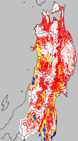 安全作期の策定にある気温指標のうち、夏作物の生育可能な気温指標10℃を用いて表示しています。10℃以下については1℃刻みで表示し、可能域がどのように推移するかをみるものです。