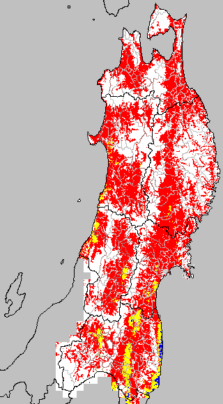 安全作期の策定にある気温指標のうち、中苗・成苗移植の安全早限日の気温指標13.0℃を用いて表示しています。13.0℃以下については1℃刻みで表示し、可能域がどのように推移するかをみるものです。