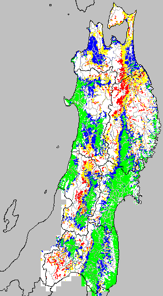 安全作期の策定にある気温指標のうち、夏作物の生育可能な気温指標10℃を用いて表示しています。10℃以下については1℃刻みで表示し、可能域がどのように推移するかをみるものです。