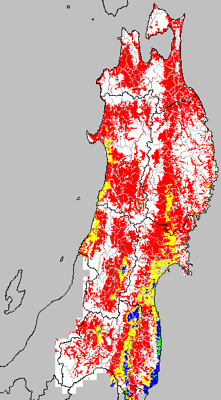 安全作期の策定にある気温指標のうち、中苗・成苗移植の安全早限日の気温指標13.0℃を用いて表示しています。13.0℃以下については1℃刻みで表示し、可能域がどのように推移するかをみるものです。
