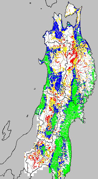 安全作期の策定にある気温指標のうち、夏作物の生育可能な気温指標10℃を用いて表示しています。10℃以下については1℃刻みで表示し、可能域がどのように推移するかをみるものです。