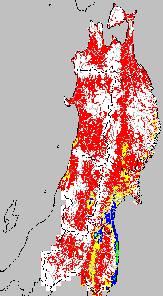 安全作期の策定にある気温指標のうち、中苗・成苗移植の安全早限日の気温指標13.0℃を用いて表示しています。13.0℃以下については1℃刻みで表示し、可能域がどのように推移するかをみるものです。