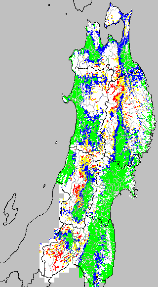 安全作期の策定にある気温指標のうち、夏作物の生育可能な気温指標10℃を用いて表示しています。10℃以下については1℃刻みで表示し、可能域がどのように推移するかをみるものです。