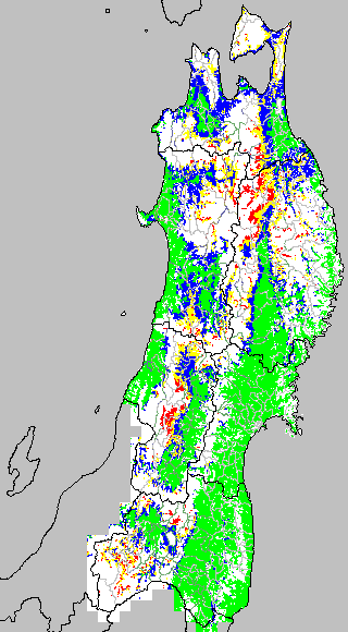 安全作期の策定にある気温指標のうち、夏作物の生育可能な気温指標10℃を用いて表示しています。10℃以下については1℃刻みで表示し、可能域がどのように推移するかをみるものです。