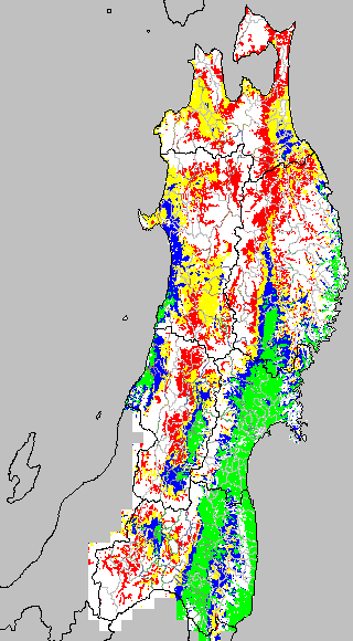 安全作期の策定にある気温指標のうち、湛水直播の安全早限日の気温指標11.5℃を用いて表示しています。11.5℃以下については1℃刻みで表示し、可能域がどのように推移するかをみるものです。