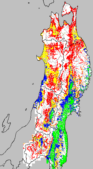 安全作期の策定にある気温指標のうち、稚苗移植の安全早限日の気温指標12.0℃を用いて表示しています。12.0℃以下については1℃刻みで表示し、可能域がどのように推移するかをみるものです。