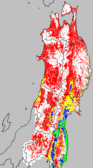 安全作期の策定にある気温指標のうち、乾田直播の安全早限日の気温指標13.5℃を用いて表示しています。13.5℃以下については1℃刻みで表示し、可能域がどのように推移するかをみるものです。