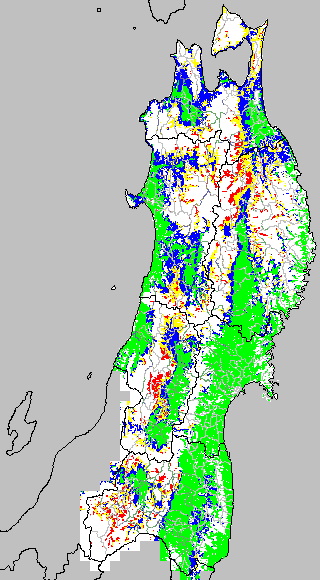 安全作期の策定にある気温指標のうち、夏作物の生育可能な気温指標10℃を用いて表示しています。10℃以下については1℃刻みで表示し、可能域がどのように推移するかをみるものです。