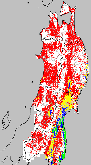 安全作期の策定にある気温指標のうち、乾田直播の安全早限日の気温指標13.5℃を用いて表示しています。13.5℃以下については1℃刻みで表示し、可能域がどのように推移するかをみるものです。