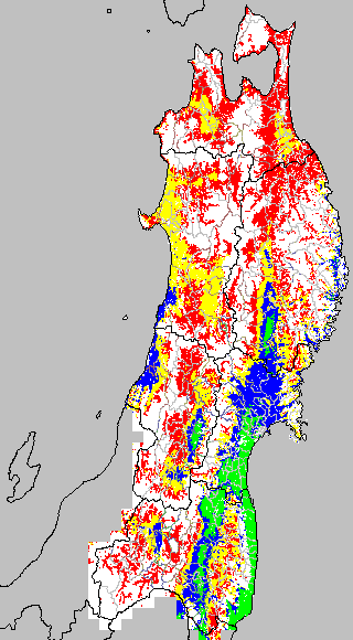 安全作期の策定にある気温指標のうち、稚苗移植の安全早限日の気温指標12.0℃を用いて表示しています。12.0℃以下については1℃刻みで表示し、可能域がどのように推移するかをみるものです。