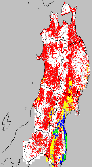 安全作期の策定にある気温指標のうち、乾田直播の安全早限日の気温指標13.5℃を用いて表示しています。13.5℃以下については1℃刻みで表示し、可能域がどのように推移するかをみるものです。