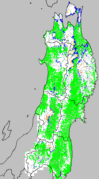 安全作期の策定にある気温指標のうち、夏作物の生育可能な気温指標10℃を用いて表示しています。10℃以下については1℃刻みで表示し、可能域がどのように推移するかをみるものです。