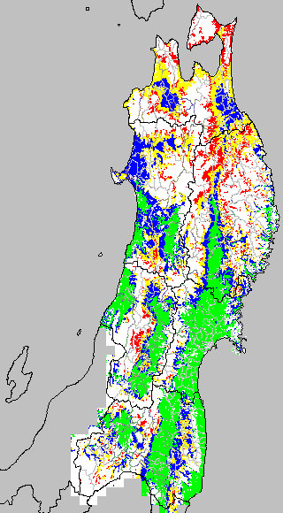 安全作期の策定にある気温指標のうち、稚苗移植の安全早限日の気温指標12.0℃を用いて表示しています。12.0℃以下については1℃刻みで表示し、可能域がどのように推移するかをみるものです。