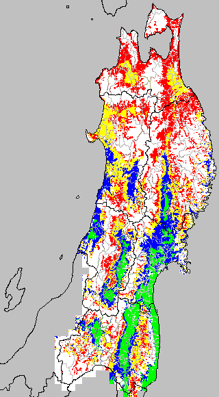 安全作期の策定にある気温指標のうち、中苗・成苗移植の安全早限日の気温指標13.0℃を用いて表示しています。13.0℃以下については1℃刻みで表示し、可能域がどのように推移するかをみるものです。