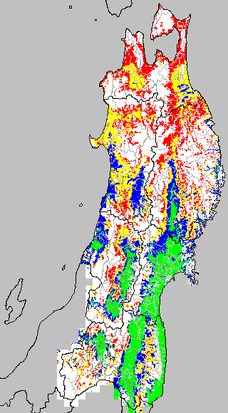 安全作期の策定にある気温指標のうち、中苗・成苗移植の安全早限日の気温指標13.0℃を用いて表示しています。13.0℃以下については1℃刻みで表示し、可能域がどのように推移するかをみるものです。