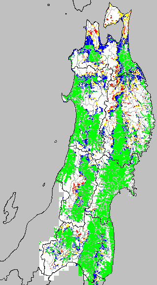 安全作期の策定にある気温指標のうち、稚苗移植の安全早限日の気温指標12.0℃を用いて表示しています。12.0℃以下については1℃刻みで表示し、可能域がどのように推移するかをみるものです。