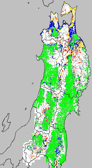 安全作期の策定にある気温指標のうち、湛水直播の安全早限日の気温指標11.5℃を用いて表示しています。11.5℃以下については1℃刻みで表示し、可能域がどのように推移するかをみるものです。