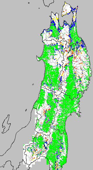 安全作期の策定にある気温指標のうち、湛水直播の安全早限日の気温指標11.5℃を用いて表示しています。11.5℃以下については1℃刻みで表示し、可能域がどのように推移するかをみるものです。