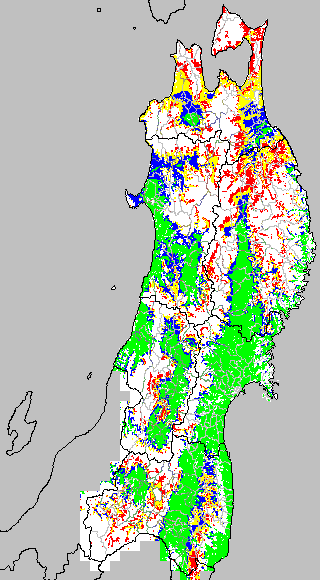 安全作期の策定にある気温指標のうち、中苗・成苗移植の安全早限日の気温指標13.0℃を用いて表示しています。13.0℃以下については1℃刻みで表示し、可能域がどのように推移するかをみるものです。