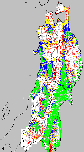 安全作期の策定にある気温指標のうち、乾田直播の安全早限日の気温指標13.5℃を用いて表示しています。13.5℃以下については1℃刻みで表示し、可能域がどのように推移するかをみるものです。