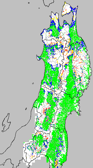 安全作期の策定にある気温指標のうち、乾田直播の安全早限日の気温指標13.5℃を用いて表示しています。13.5℃以下については1℃刻みで表示し、可能域がどのように推移するかをみるものです。