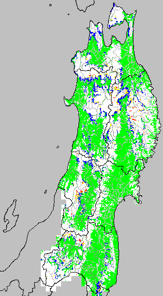 安全作期の策定にある気温指標のうち、中苗・成苗移植の安全早限日の気温指標13.0℃を用いて表示しています。13.0℃以下については1℃刻みで表示し、可能域がどのように推移するかをみるものです。