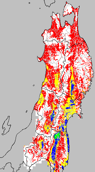 各種文献などを参考にして、分げつ形成に関する限界温度を平均気温で15℃と設定し、15℃以上については1℃刻みで表示します。過去7日の移動平均値で示す。分げつの形成が遅延すると予想される地域を監視するものです。