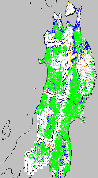 安全作期の策定にある気温指標のうち、中苗・成苗移植の安全早限日の気温指標13.0℃を用いて表示しています。13.0℃以下については1℃刻みで表示し、可能域がどのように推移するかをみるものです。