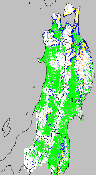 安全作期の策定にある気温指標のうち、中苗・成苗移植の安全早限日の気温指標13.0℃を用いて表示しています。13.0℃以下については1℃刻みで表示し、可能域がどのように推移するかをみるものです。