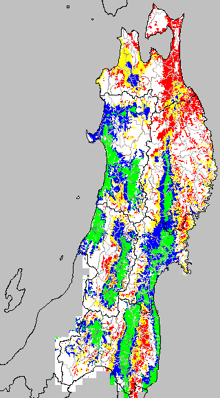 各種文献などを参考にして、草丈・根の伸長に関する限界温度を平均気温で13℃と設定し、13℃以上については1℃刻みで表示します。過去7日の移動平均値で示す。草丈や根の伸長が遅延すると予想される地域を監視するものです。