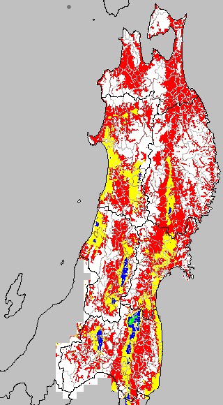 各種文献などを参考にして、分げつ形成に関する限界温度を平均気温で15℃と設定し、15℃以上については1℃刻みで表示します。過去7日の移動平均値で示す。分げつの形成が遅延すると予想される地域を監視するものです。